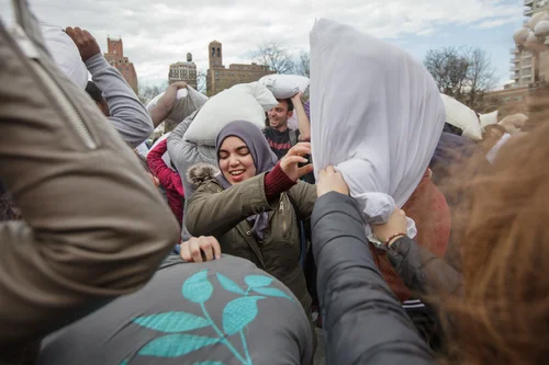 International Pillow Fight Day, Washington square park, New York. April 02, 2016
